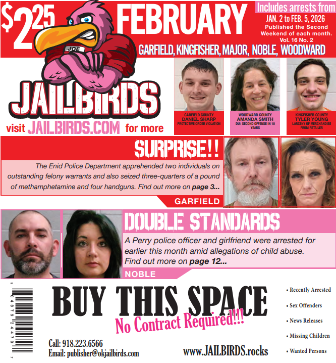 FUNNY mugshots & CRAZY crime stories - discover some of Oklahoma's most unique violators of the law! JAILBIRDS is a monthly mugshot newspaper that publishes recent and local arrests. Download NOW to gain inside access to the world of crime in Smalltown, USA!