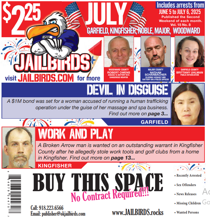FUNNY mugshots & CRAZY crime stories - discover some of Oklahoma's most unique violators of the law! JAILBIRDS is a monthly mugshot newspaper that publishes recent and local arrests. Download NOW to gain inside access to the world of crime in Smalltown, USA!