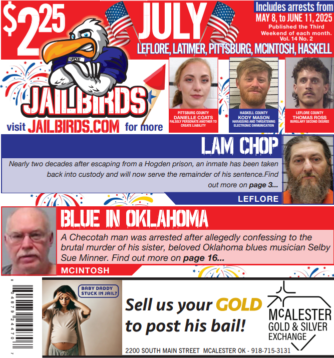 This is a downloadable, high-quality PDF version of JAILBIRDS for: LEFLORE, MCINTOSH, LATIMER, PITTSBURG, HASKELL - JULY 2025