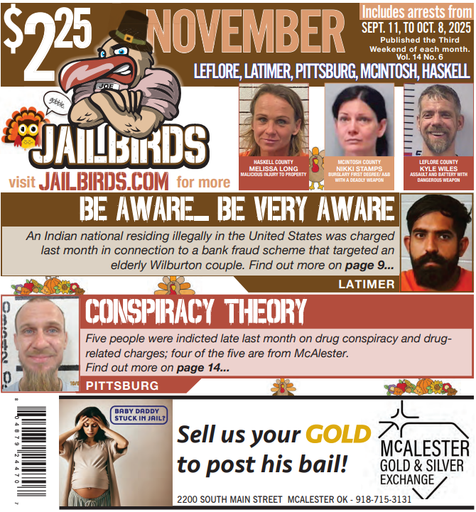 This is a downloadable, high-quality PDF version of JAILBIRDS for: LEFLORE, MCINTOSH, LATIMER, PITTSBURG, HASKELL - November 2025