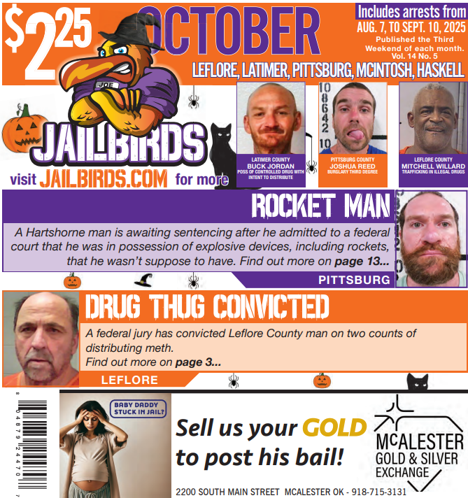 This is a downloadable, high-quality PDF version of JAILBIRDS for: LEFLORE, MCINTOSH, LATIMER, PITTSBURG, HASKELL - OCTOBER 2025