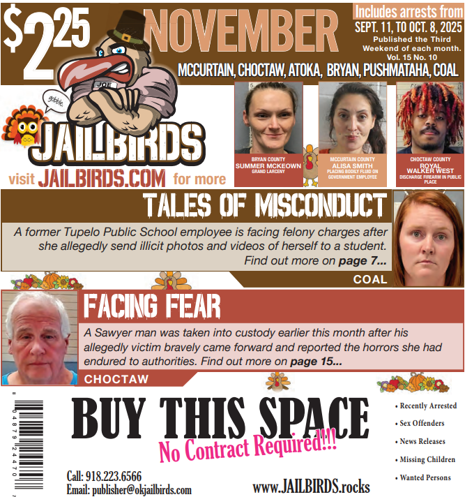 This is a downloadable, high-quality PDF version of JAILBIRDS for: MCCURTAIN, CHOCTAW, BRYAN, ATOKA, PUSHMATAHA, COAL - November 2025