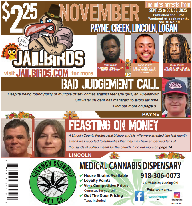 This is a downloadable, high-quality PDF version of JAILBIRDS for: PAYNE, CREEK, LINCOLN, LOGAN - November 2025
